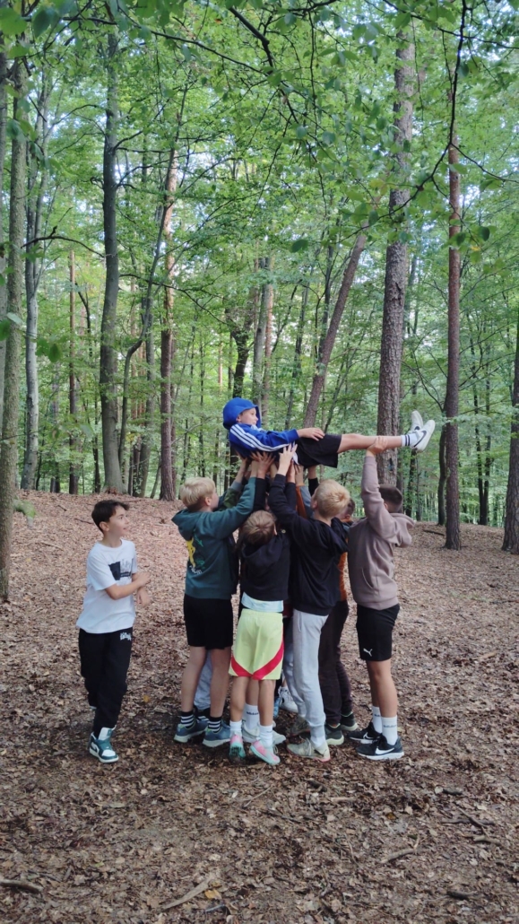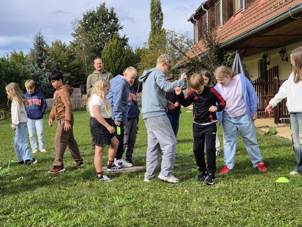 Bei wunderschönem Herbstwetter standen zahlreiche Aktivitäten auf dem Programm, die ganz im Zeichen des gegenseitigen Kennenlernens und des Teamgeists standen. Auf der Wiese vor dem JUFA und im angrenzenden Wald wurden verschiedene Kennenlern-, Team- und Vertrauensspiele durchgeführt.